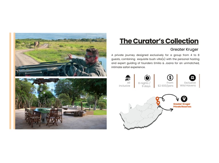 Welcome to your Private Villa escape - an indulgent retreat where exclusivity meets effortless immersion in nature. This itinerary is designed for those who seek privacy without compromise, blending the intimacy of a secluded home with the richness of curated safari experiences.