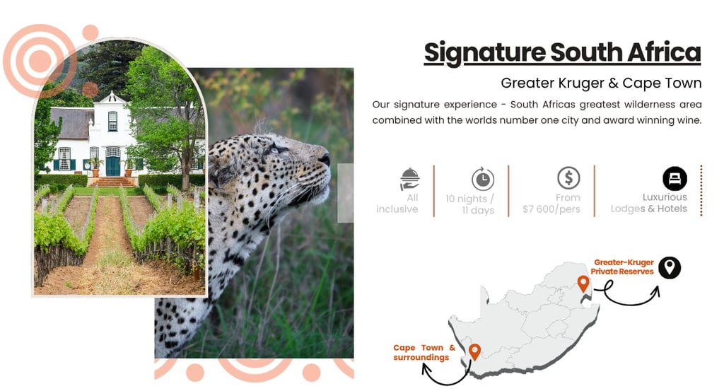 This itinerary is designed for the traveller who wants to experience the true essence of South Africa. We've curated a seamless journey that showcases the nation's celebrated diversity by combining our two most iconic destinations: the wilderness of the Greater Kruger and the breathtaking beauty of the Cape. It’s the perfect introduction to the country, all in one unforgettable trip.
